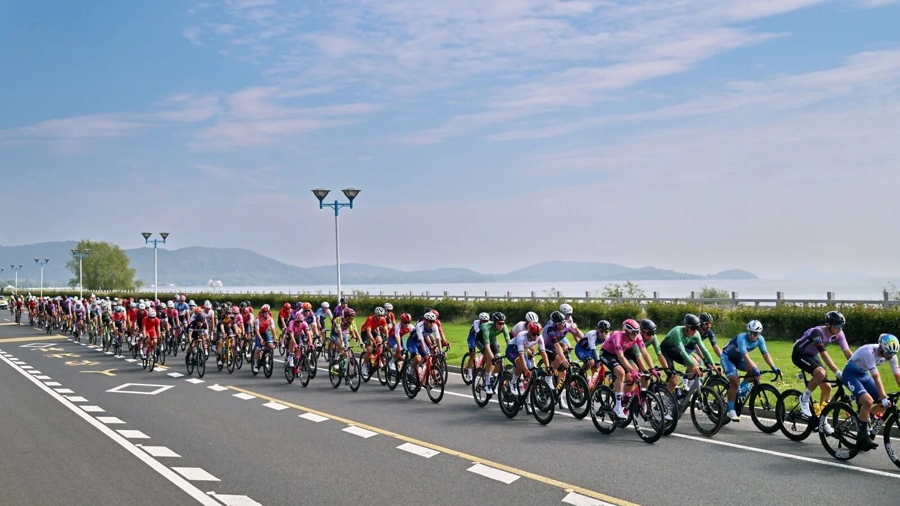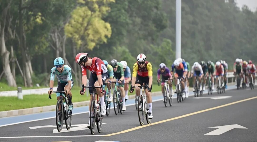 10月12日上午,2025第十三届环太湖国际公路自行车赛暨长三角穿越赛(以下简称“环太湖赛”)迎来本届赛事带来收官之战——第四赛段无锡滨湖马山环岛赛。来自全球20余支顶尖车队的132名职业车手在这条137.48公里的国际级赛道上破风追光。随后,600位大众骑行爱好者也在这条职业赛道上享受了一把专业赛事的规格和氛围。